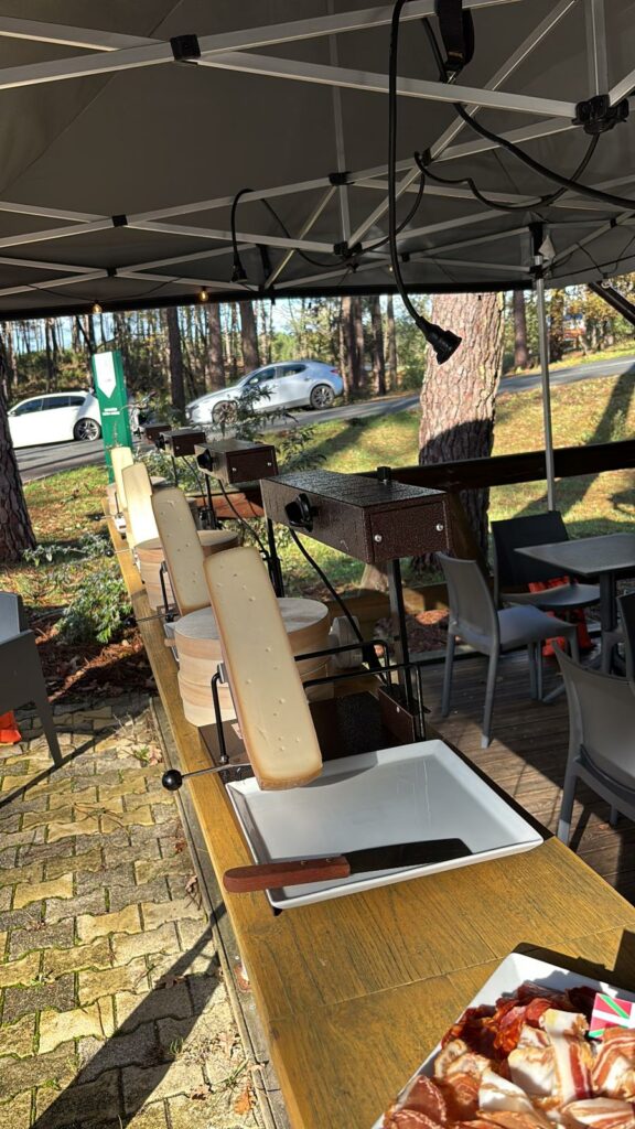 Aux côtés d’une cinquantaine de golfeurs, chacun a pu profiter d’un parcours 9 trous avant de se retrouver autour d’une raclette traditionnelle. Installés en extérieur, près du club house et au cœur des pins, les participants ont partagé un moment chaleureux, malgré la fraîcheur, grâce notamment aux jolis bonnets distribués par Bruno et Lucas.