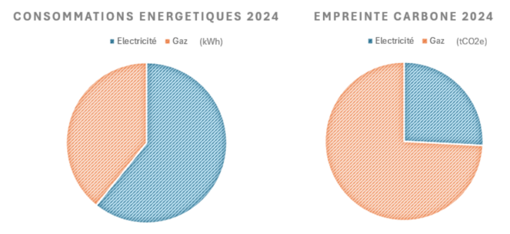L’électricité représente environ 61 % de nos consommations d’énergie, contre 39 % pour le gaz. Pourtant, lorsque l’on regarde l’empreinte carbone associée, la situation s’inverse : le gaz représente environ 74 % des émissions liées à l’énergie, contre 26% pour l’électricité.